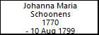 Johanna Maria Schoonens• Geboren: 1770, Tilburg • Gehuwd: 27 May 1792, Tilburg, met Johannes van Iersel • Overleden: 10 Aug 1799, Tilburg (Stokhasselt) • Beroep, enz.: Heeft vader Adriaan Jan Schoonens. • Woont: Aan de Stokhasselt. | ||||