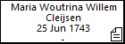 Maria Woutrina Willem Cleijsen• Geboren: 25 Jun 1743, Tilburg • Gehuwd: 1 Dec 1766, Tilburg, met Norbart Leenhouwers • Gehuwd: 3 Nov 1788, Tilburg, met Nicolaas de Kok • Woont: Aan de Hasselt. • Bron(nen): R-1781-14-8205-59v | ||||