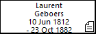 Laurent Geboers• Geboren: 10 Jun 1812, Tilburg (Hasselt 477) • Gehuwd: 27 Jun 1833, Tilburg, met Francoise Raaijmakers • Overleden: 23 Oct 1882, Tilburg (Heikant) • Beroep, enz.: Wever. • Woont: Te Tilburg. • Bron(nen): Volkstelling Hasselt (1830). | ||||