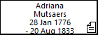 Adriana Zebregs• Geboren: 15 Mar 1814, Tilburg (Hasselt 488) • Gehuwd: 28 Jan 1841, Tilburg, met Norbertus Stokkermans • Overleden: 21 Nov 1881, Tilburg (Goirke) • Beroep, enz.: Landbouwster. • Woont: Te Tilburg. • Bron(nen): Volkstelling Hasselt (1830). | ||||